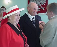 W dniu referendum i Jarmarku w Mszczonowie miało miejsce jeszcze jedno doniosłe wydarzenie. W sali ślubów Urzędu Stanu Cywilnego zgromadziło się tego dnia liczne grono przyjaciół i krewnych państwa Danuty i Mieczysława Świederskich. Wszyscy chcieli im towarzyszyć w uroczystości dekoracji medalami za długoletnie pożycie małżeńskie. Medale te przyznane zostały przez Prezydenta RP Aleksandra Kwaśniewskiego. Państwo Świderscy nie kryli wzruszenia. Chwile dekoracji, której dokonał burmistrz Grzegorz Kurek poprzedziło ciepłe przemówienie kierownika USC pani Barbary Kłopotowskiej. Później złoci jubilaci odebrali wiele życzeń kolejnych długich lat wspólnego życia. Na zakończenie strzeliły korki od szampanów, a uczestnicy uroczystości zebrali się by uwiecznić tą wspaniała chwilę na wspólnej fotografii.