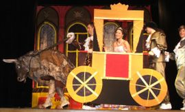 „Księżniczka Grymasela” to historia pięknej arystokratki, zadręczającej swoich dworzan zachciankami, które są nie tylko trudne do spełnienia ale także okazują się – mówiąc delikatnie- niezbyt mądre. Na początku Grymasela życzy sobie wołu do karety co kończy się dla niej fatalną w skutkach przejażdżką po świeżo zaoranym polu. Widownia dobrze bawi się także obserwując komiczne efekty jej kolejnej zachcianki, polegającej na próbie uczynienia z poczciwego chłopa Jaśka szlachcica biegłego w dworskich obyczajach. Sztuka o Grymaseli oparta na dwóch świetnie znanych powiedzeniach („pasuje jak wół do karety” i „z chłopa pan”) oferuje dziecięcej publiczności mnóstwo udanej zabawy, a dorosłym widzom uświadamia, że nawet przy snuciu marzeń trzeba się jednak liczyć z realiami, bo w przeciwnym razie narażamy się na niepotrzebne rozczarowania, a niekiedy również na śmieszność. Po obejrzeniu spektaklu naszła mnie jednak myśl, że w jakimś sensie aktorzy przeczą treścią prezentowanej sztuki temu co im samym udało się osiągnąć. Okazuje się bowiem, że z wołu nie będzie nigdy dobrego zaprzęgu do karety i z chłopa pana uczynić się nie da, ale z zapalonych amatorów marzących o aktorskich doznaniach udało się zbudować zespół teatralny, który nie tylko świetnie czuje się na scenie, ale także potrafi swoją radością czerpaną z gry dzielić się z publicznością. Pod tymi względami „Grupa Jozefa” przewyższa nawet profesjonalne teatry, czyli osiągnęła coś co pozornie wydawało się nie do zrealizowania ;) Członkowie „Grupy ...” grają naturalnie oraz pogodnie i tym samym zyskują sympatię widzów, którzy nawet w przypadku dostrzeżenia drobnych potknięć nie żałują im braw.